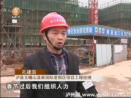 瀘縣玉蟾山溫泉國際度假區(qū)項目工程經理孔建國告訴記者,預計三月十八號前客房基本完成封頂,三月底完成整個工程量的百分之九十。(記者:韓月 胡迪)
